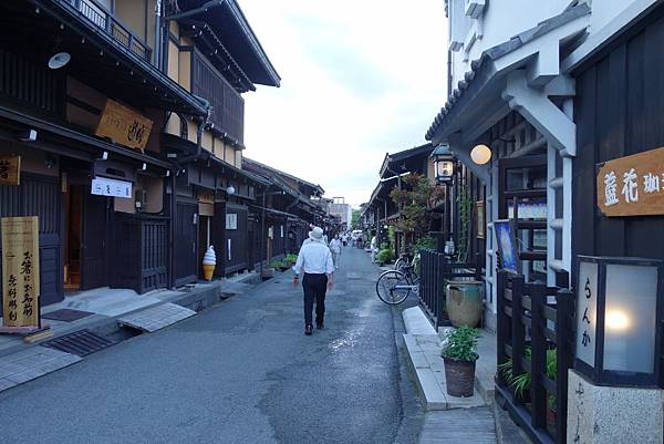 高山Takayama的舊城,呈現著濃濃日式木造房屋的舊日情懷,難怪是高山的主要景點之一,當地的高山祭是日本三大祭典之一,春秋各一次,我們去的時日正值炎炎夏日,酷熱艷陽下可以充分理解為何祭典辦在氣候宜爽的春秋兩季,穿著短袖短褲的兩人汗流浹背,我呢甚至熱到稍微走動久一點都會喘,真是為難那些穿著和服的女子。