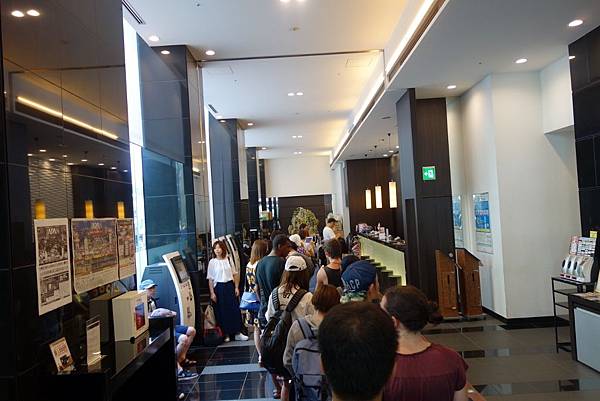 等著check in的旅客,主要還是亞洲人較多,如同在其他酒店和街上景點看到的,顯然地台灣人,中國人和韓國人是日本旅遊業的主要支撐。我們在名古屋待的五星級飯店就看到較多因商務旅行的西方人。